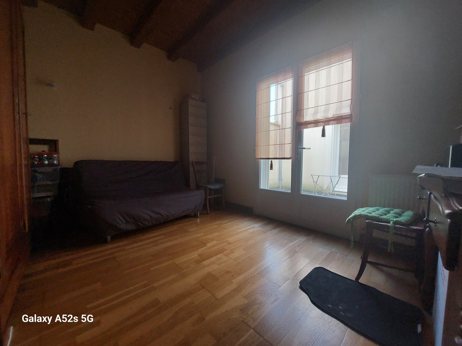 Il se compose d’une cuisine aménagée et équipée d'une table de cuisson à induction, d'une hotte, d'un four, d'un lave-vaisselle et d'un réfrigérateur. La maison dispose d'un grand salon/séjour de 32m² qui donne sur une cour intérieure. On trouve également un WC.