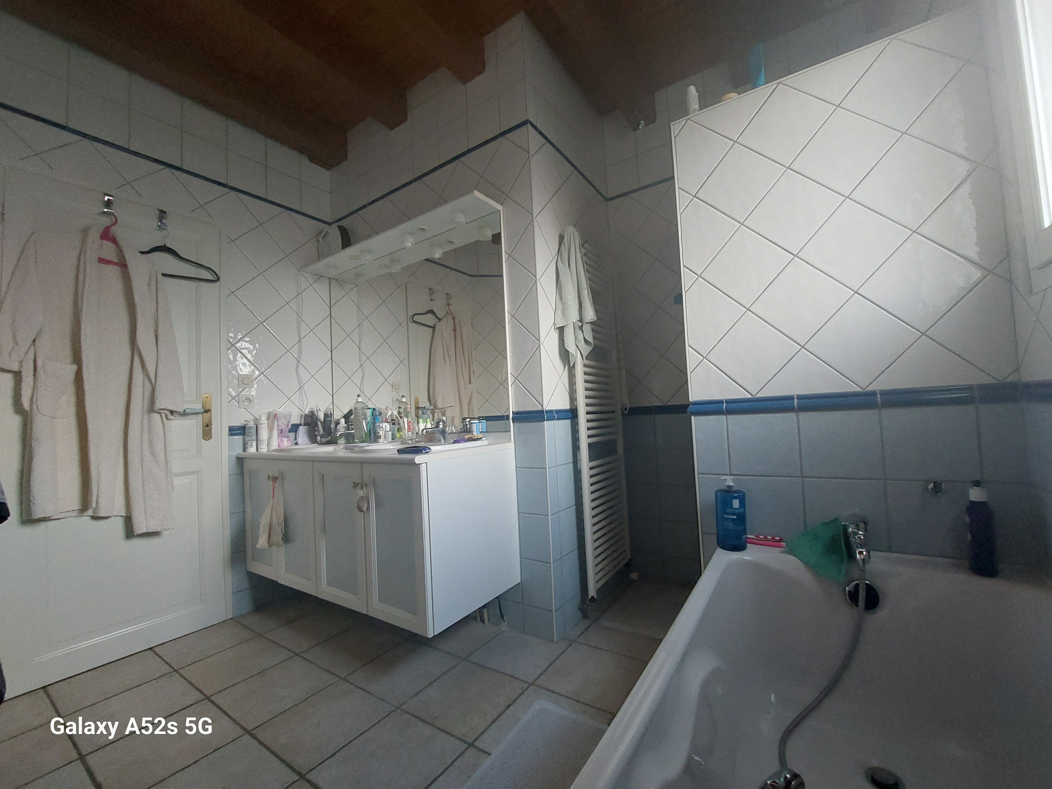 La partie nuit se compose d’une salle de bain avec douche, baignoire, double vasques et sèche-serviettes ainsi que de trois chambres dont une avec placard un WC.