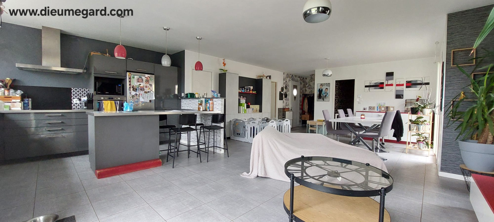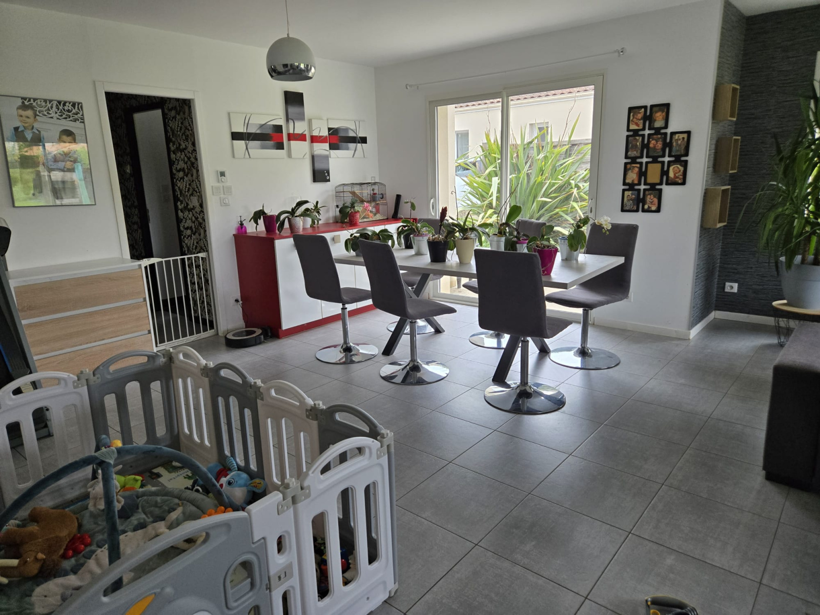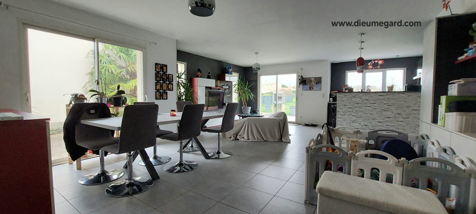 Faîtes l'acquisition de ce plain-pied de type T4 sur le territoire de La Crèche. Cette maison est propice à la vie familiale. Elle se constitue de 3 chambres avec placards dont une avec dressing, une salle d'eau avec douche à l'italienne et deux vasques et une pièce de vie de 51.87m² avec une cuisine ouverte équipée et aménagée. La construction s'est achevée en 2013, le bâtiment est moderne. Des fenêtres à double vitrage assurent le calme du lieu. Consomme peu d'énergie. Le cahuffage au sol est électrique et bi Zone ( la partie nuit est dissociable de la partie jour). Pour déjeuner au soleil, vous disposerez de 2 terrasses totalisant environ 30m². La maison possède un cellier et un garage motorisé.